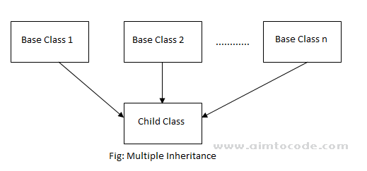 Multiple inheritance occurs when a class inherits from more than one base class.The class which inherits the properties of another class is called Derived or Child or Sub class and the class whose properties are inherited is called Base or Parent or Super class