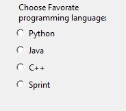 The button can only display text in a single font. A Python function or method can be associated with a radio button. This function or method will be called, if you press this radio button.