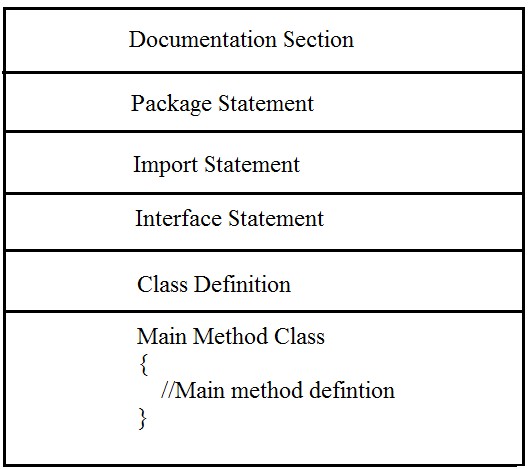 here, class is keyword and MyProgram is a variale name of the class, The class definition shuld be within the curly brackets. Then comes public static void main(String args[])